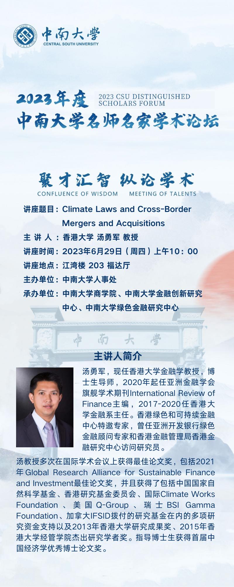 3044am永利集团官网名师名家学术论坛-Climate Laws and Cross-Border Mergers and Acquisitions